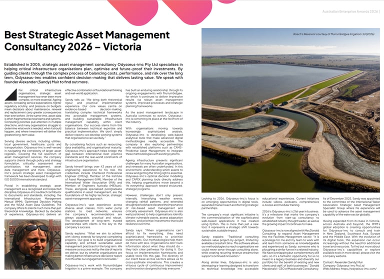 Odysseus-imc Pty Ltd has been awarded Best Strategic Asset Management Consultancy 2026!